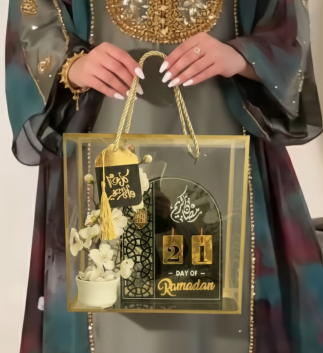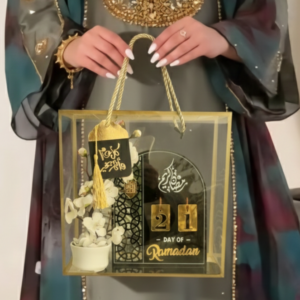 شنطة من الخوص تحتوي على ملفع صلاة مع البخور والتنسيق والبطاقة