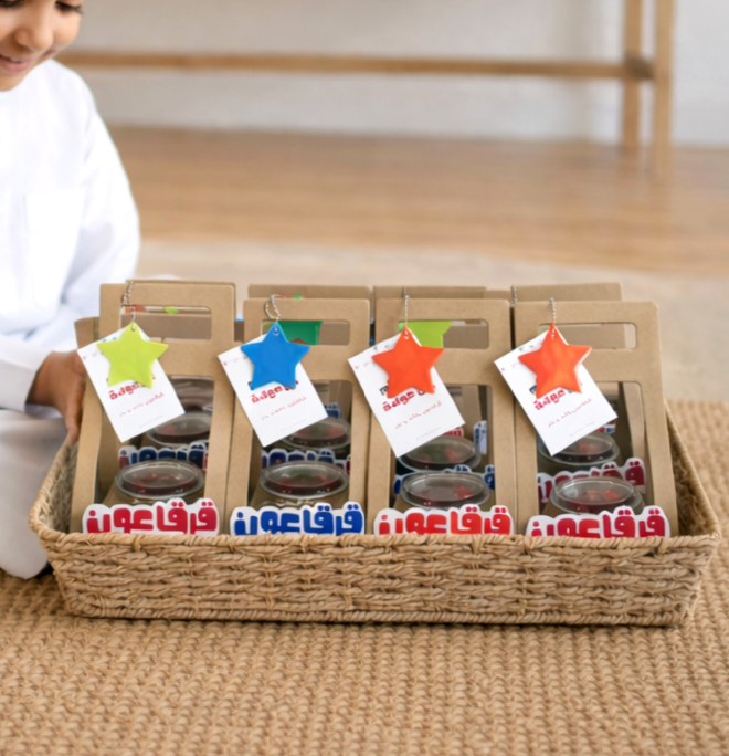 علبة بشخصياتنا الخليجية الكيوت تحتوي على ٢٥ لعبة متنوعة حجم العلبة 30x30 cm
